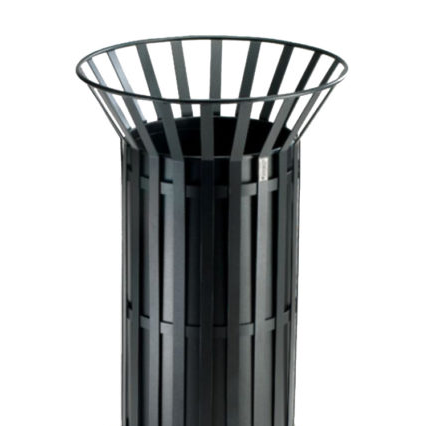 Economico e molto usato nei parchi e nei boschi. Contenitore a forma cilindrica con nervature, ottenuto dalla calandratura a freddo di lamiera perforata con punzonatrice, chiuso tramite elettrosaldatura