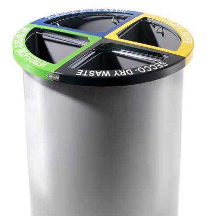 Cestino per la raccolta differenziata ideale per grandi strutture come aeroporti, centri commerciali, ecc.… Disponibile in varie versioni.