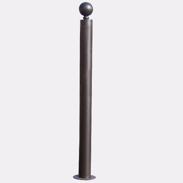 Dissuasore Berlino da tassellare senza anelli, realizzato in tubolare di acciaio Ø80 mm con sovrastante borchia e sfera decorativa in acciaio forgiato. Il fissaggio al suolo avviene con piastra base tramite tasselli. Le parti in acciaio sono zincate secondo norme UNI e verniciate a polveri poliestere termoindurenti nelle diverse colorazioni RAL.
