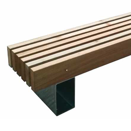 Panchina in legno con o senza schienale con struttura in acciaio zincato e verniciato.