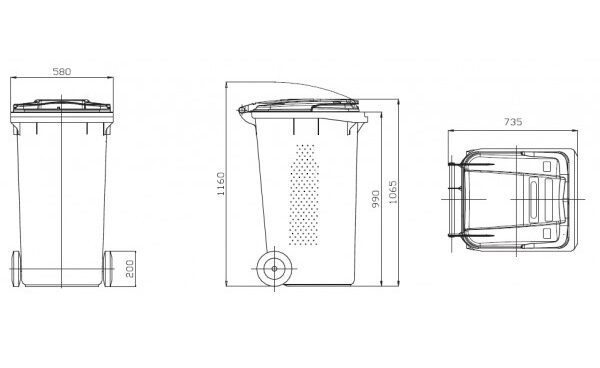 | Aggiunte opzionali | - Serratura a lucchetto/triangolo/gravitazionale - Inserti per la raccolta differenziata di vetro, carta ed imballaggi - Sistema di riduzione rumore - Ruote da diametro di 250 mm - Sistemi di identificazione individuali mediante trasponder - Reggisacco - Pedaliera - Paletto per fissaggio al suolo - Stampa serigrafica personalizzata |