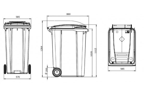 | Aggiunte opzionali | - Serratura a lucchetto/triangolo/gravitazionale - Inserti per la raccolta differenziata di vetro, carta ed imballaggi - Sistema di riduzione rumore - Ruote da diametro di 250 mm - Sistemi di identificazione individuali mediante trasponder - Reggisacco - Pedaliera - Paletto per fissaggio al suolo - Stampa serigrafica personalizzata |