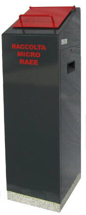 È un raccoglitore specifico per la raccolta di piccoli RaeE (Rifiuti di apparecchiature elettriche ed Elettroniche) dismessi, studiato e prodotto per l’utilizzo in totale sicurezza